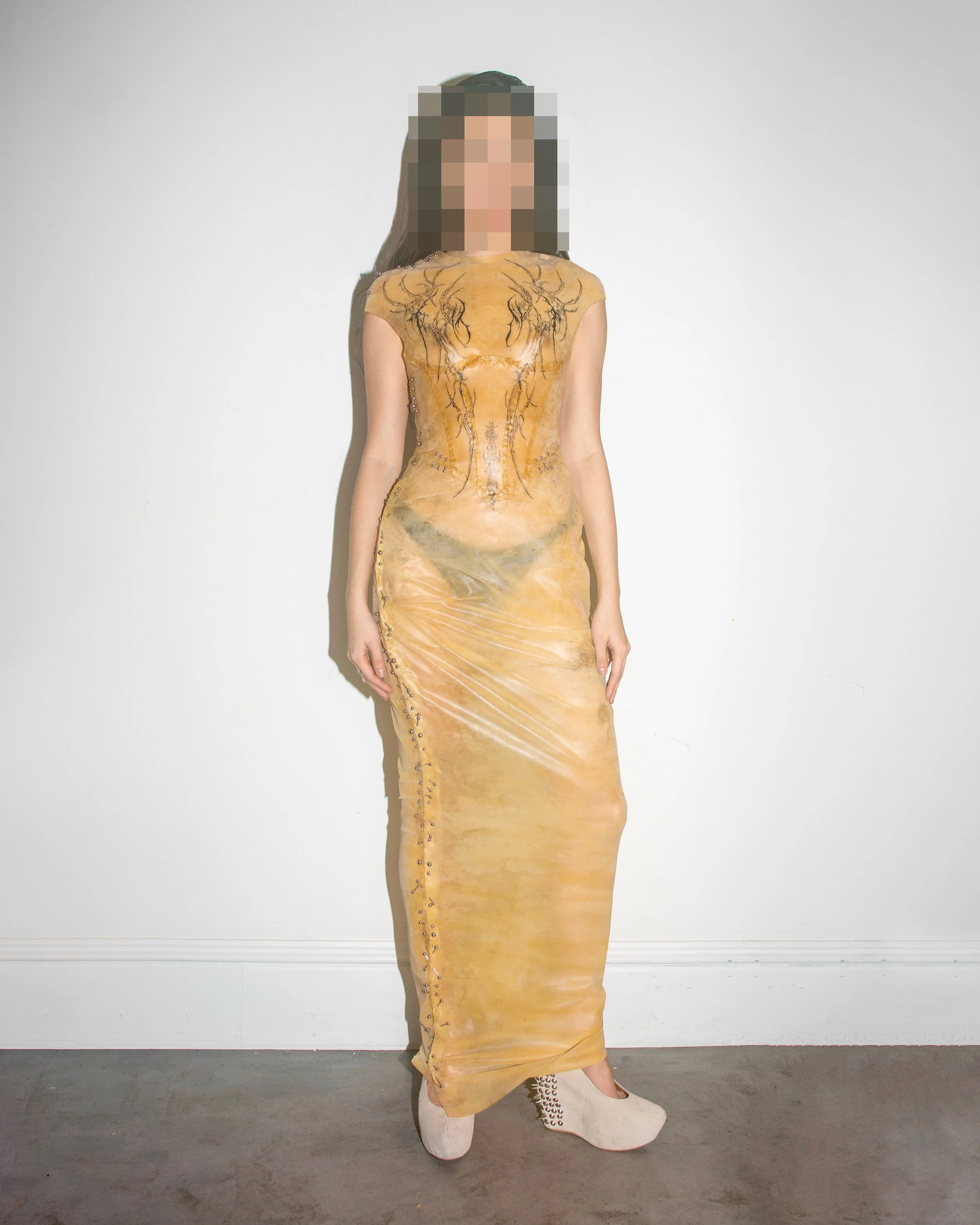 Explore the potential dialogue between human emotions under the context of body adornment and fashion design by using natural liquid latex to create tattooed textiles to enhance the emotional values of tattoo culture, where it could be a new form of a second skin.